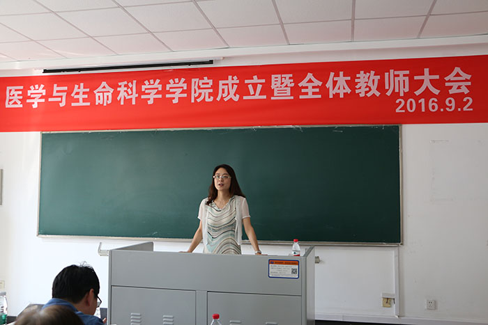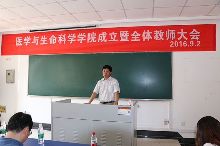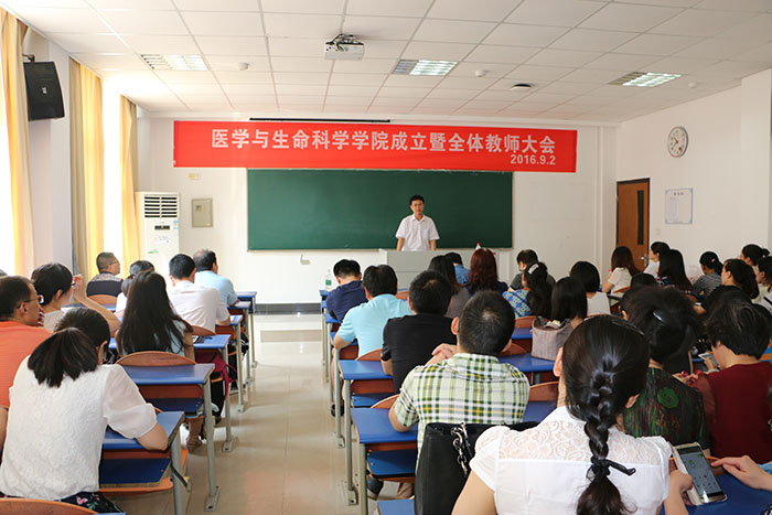 2016年9月2日三亿体育官网医学与生命科学公司(简称生科院)成立暨全体教师大会在B8207教室隆重召开,这标志着公司成为国内首批通过教育部审批获得临床医学招生资格的中医类院校。生科院的成立为公司实现“中西医结合”的目标,切实提升中医药水平提供了一个良好的平台;为践行国家“继承好、发展好、利用好”中医药资源提供保障;为深入发掘中医药宝库中的精华,突出中医药的特色与优势,让中医药在“健康中国”的发展道路上发挥重要作用打下坚实基础。