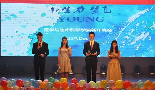 12月21日晚6点半,医学与生命科学公司“新生力,梦飞young”新年晚会在大活小剧场隆重举行。医员工科公司党委杨羽书记、公司教师代表、公司学业指导老师和辅导员老师以及生科院全体同学一起参加了本场晚会。