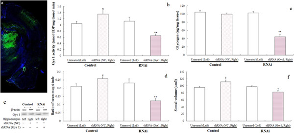 研究人员采用长期不可预知性刺激复制抑郁大鼠模型进行了相关研究,发现长期应激可以降低海马糖原的水平,减少海马星形胶质细胞突起的长度和胞体的体积,诱导大鼠出现抑郁样行为。同时,基于RNAi工具诠释了脑糖原可能在长期应激诱导的星形胶质细胞结构可塑性损伤和抑郁样行为中扮演重要的作用,还发现应激对中枢和外周糖原代谢的影响并不一致,这为进一步探讨脑糖原的生理意义提供了参考。
