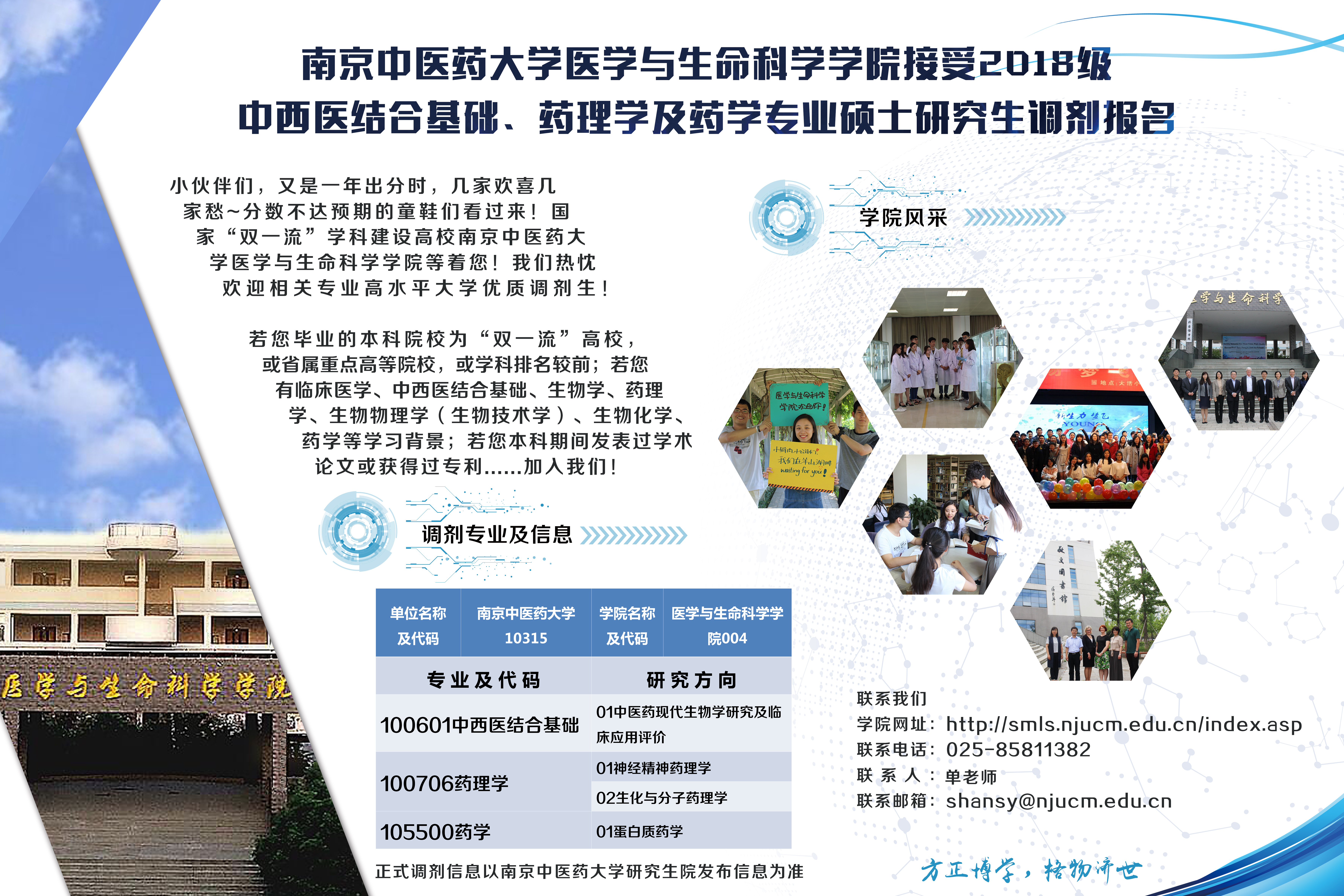 三亿体育官网医学与生命科学公司接受2018级中西医结合基础、药理学及药学专业硕士研究生调剂报名