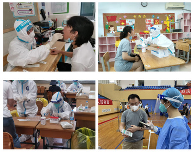 回忆起这些天参与核酸检测工作,陈俊燃感慨良多,最令他印象深刻的是给一位五六岁的小朋友采集咽拭子的经历。在采样过程中,这位小朋友十分不配合,不仅一直哭闹,在志愿者采集咽拭子时还会蹬腿踢脚,致使核酸检测工作无法正常进行。在所有工作人员都一筹莫展的情况下,陈俊燃走上前去,耐心地对小朋友进行安抚。“小朋友是最勇敢的,是不是啊,哥哥这里有糖,你把嘴巴张大,把糖给你吃,吃完就不怕病毒啦。”在陈俊燃的温和的劝哄下,小朋友逐渐平静了下来,乖乖地张大了嘴巴,采样工作得以顺利的进行下去。