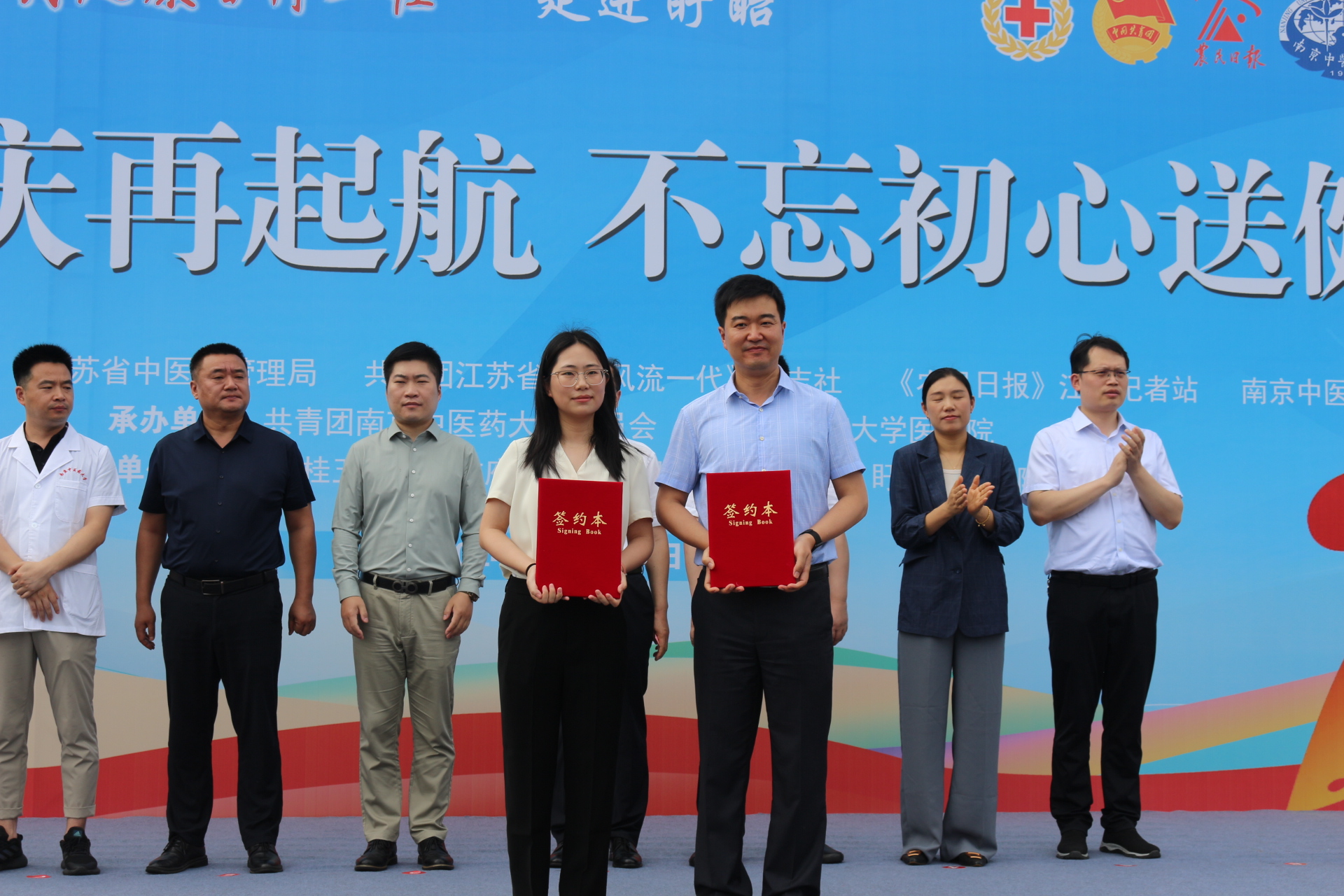 启动仪式上,校团委书记史文川与盱眙团县委书记骆梦琦签订了“双百”共建协议。医公司党委书记燕珂与盱眙县卫健委党组书记、主任张霞共同为“三亿体育官网老员工社会实践基地”揭牌。