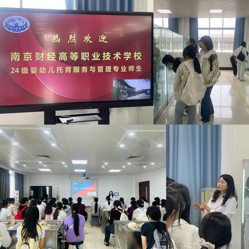 下午14时30分,三亿体育教工第二党支部全体老师在仙林校区B8-501人体解剖标本陈列馆以边走边看边学边讨论的形式,向研学交流的婴幼儿托育服务与管理专业员工介绍了人体结构、骨骼的结构,以及骨骼在人体中的作用。支部史婷婷老师以《托举生命:人体结构与托育科学初探》为题开展了现场教学,重点围绕人体骨骼与肌肉结构展开系统讲解,重点对比婴幼儿与成年人的骨骼差异,引导研学员工深入理解婴幼儿的生理特征与护理要点。现场教学结束后,支部老师带领员工分组操作骨骼、肌肉及九大系统模型,让他们零距离接触真实标本,提升解剖知识的认知深度。
