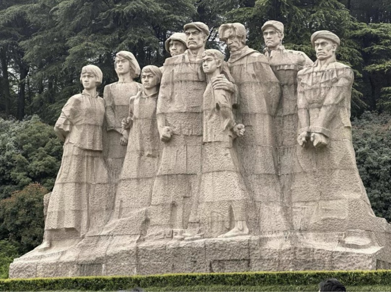 在庄严肃穆的烈士群雕前,王璐老师开启了此次实景团课之旅,生动的叙述将同学们带入那段波澜壮阔的历史长河。无数共产党人和爱国志士在此慷慨赴义。邓中夏身陷囹圄仍坚贞不屈,恽代英高唱战歌从容就义,他们以生命为笔,书写信仰的壮丽篇章。这些群雕不仅是历史的见证者,更是矗立在我们心中的精神丰碑。