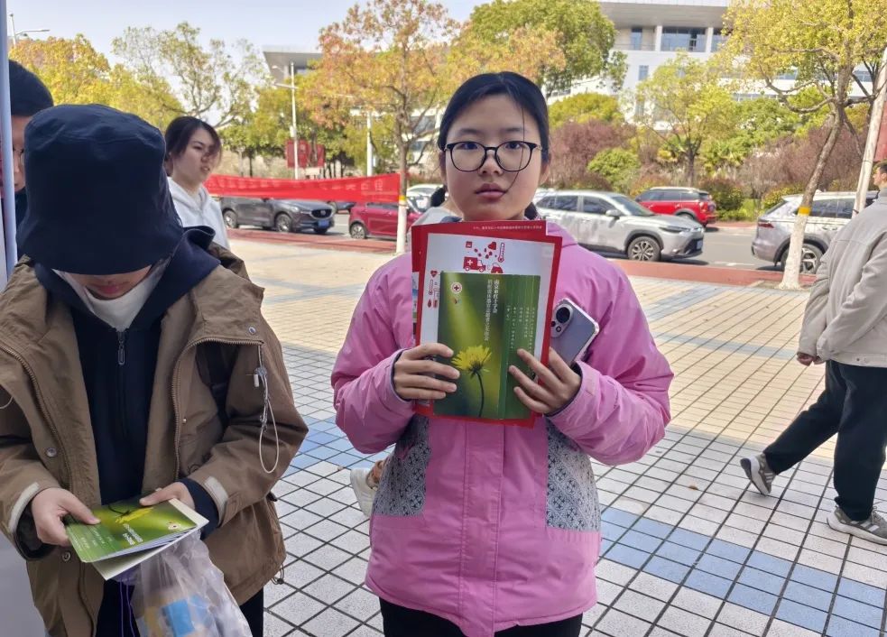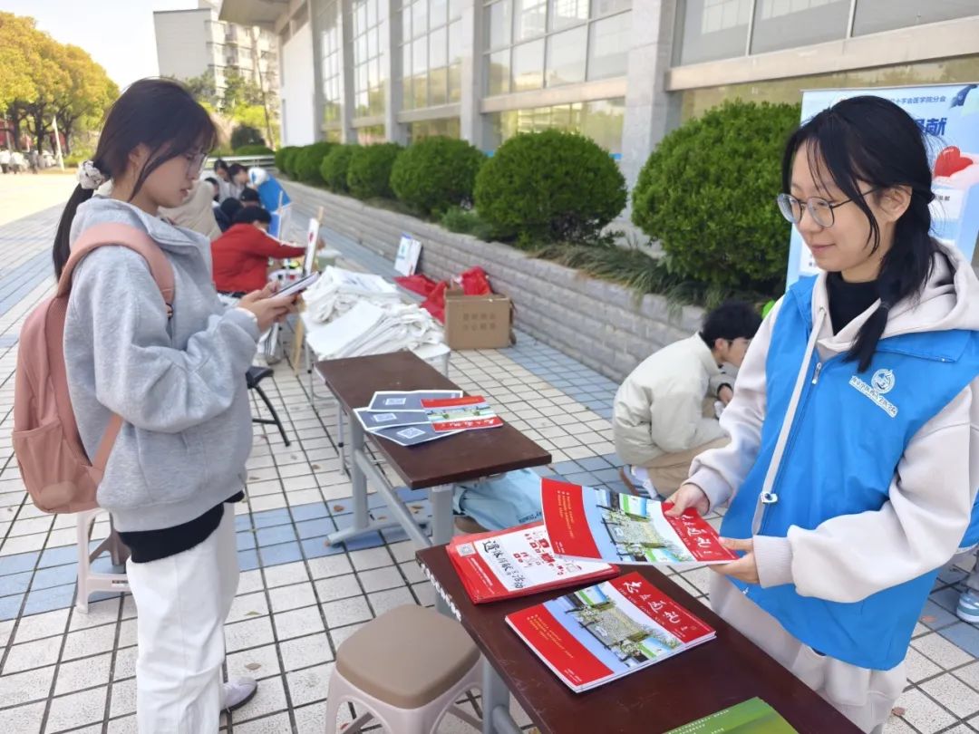 红十字会志愿者们热情地向过往师生发放宣传手册,并结合专业背景,细致讲解捐献流程、伦理意义及社会贡献,帮助大家消除疑虑、深化理解。