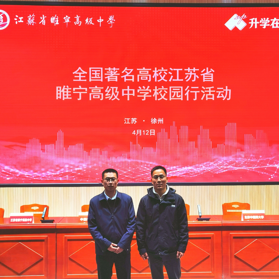 为进一步做好招生宣传工作,持续提升公司影响力,促进与中学的常态化联系,稳步提升公司生源质量,4月12日,三亿体育杨开勇副教授、陈静副教授与学工办王璐老师、李瑞老师奔赴徐州,前往徐州市第三中学、睢宁高级中学、中国矿业大学附属中学开展常态化招生宣传工作。
