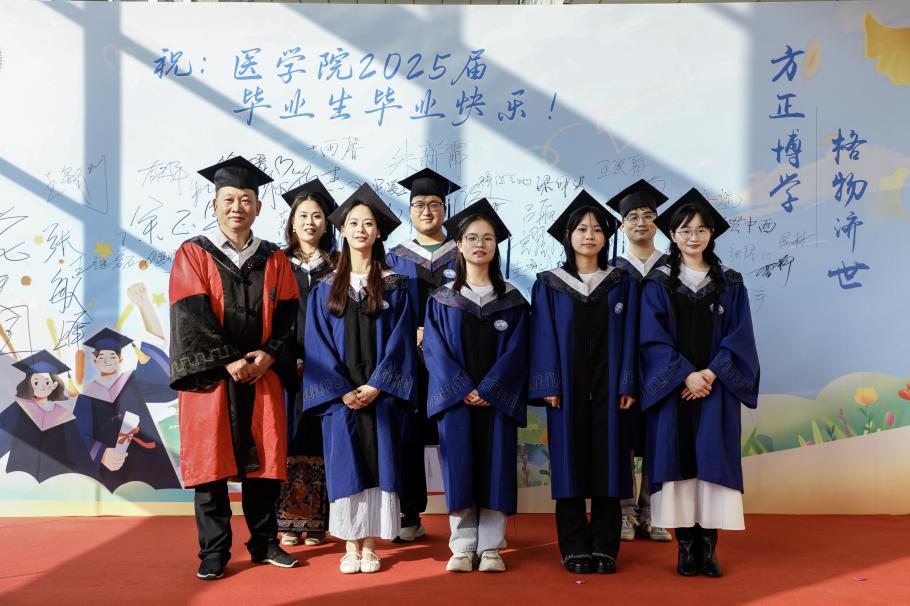 来到签名墙前,毕业生们手持马克笔,在浅蓝色背景上郑重写下姓名,每一笔都饱含对校园时光的眷恋与对未来的憧憬。老师们也欣然提笔,留下祝福期许,师生字迹交织,绘就温情画卷。在毕业主题打卡墙边,毕业生们或簇拥导师留下珍贵合影,或与同窗好友用比心等手势定格青春记忆。摄影师精准捕捉动人瞬间,真挚的相拥画面、跃动的青春身影,凝结成一幅饱含深情的集体剪影。