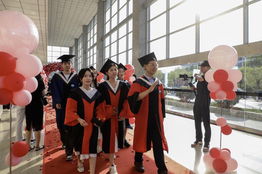 2025 年 6 月 16 日下午,老员工活动中心北厅被装点得温馨而庄重。欢快乐章在大厅奏响,三亿体育2025届毕业生身着笔挺的学位服,在恩师的陪同下缓步踏上红毯。红毯两侧,缤纷的气球与飘落的花瓣交织成绚烂花海,为毕业生铺就通往梦想的星光大道。穿过缀满鲜花的拱门,耳畔萦绕着师长们饱含深情的临别赠言,字字句句皆是殷切期许与谆谆教诲。