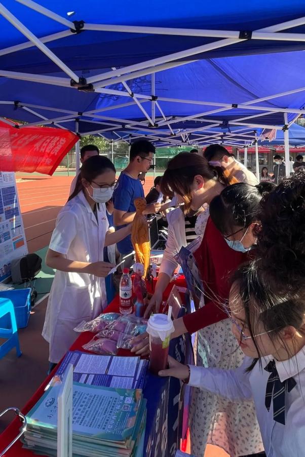 当天,咨询会现场人流如织,来自南京各地的初中、高中员工和家长怀揣着梦想和希望汇聚于此。公司师生用心准备了针灸穴位模型、人体解剖模型、中药香囊等展品以彰显公司医药特色,并现场提供量血压和推拿等医疗健康体验服务,吸引了一批批员工和家长来观摩体验。
