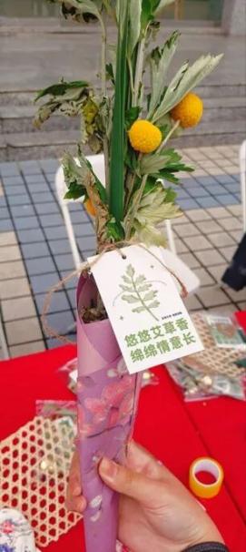 活动现场,新鲜的艾草、菖蒲、香樟果、玉簪叶等原料散发着阵阵清香。同学们充分发挥创意,精心挑选搭配,亲手制作出独具特色的艾草花束。大家或是将满载传统文化韵味的花束带回家中悬挂装饰,或是在现场相互展示分享,在劳动实践中感受传统文化魅力的同时,也增进了彼此间的交流与情谊。