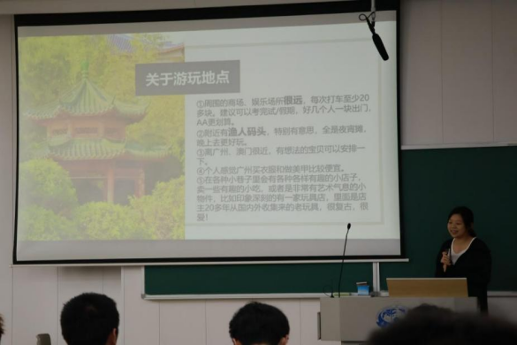 徐佳颖同学围绕交换期间的生活细节展开分享。在住宿方面,介绍了南方医科大学特色书院制度、宿舍分配规则、男女混住模式、宿舍内部设施及功能房配备等情况;学分方面,说明了公司与南方医科大学学分体系的衔接、校公选课学分获取及抵认方法;饮食上,提及食堂口味特点、价格范围及特色点餐小程序“爽提”;生活服务中,涵盖校园网络使用及充值、洗澡与饮用水充值方式、学习资料获取公众号、公司教学公众号功能等内容;还分享了周边商场、渔人码头等游玩地点,以及广州、澳门的特色消费信息。