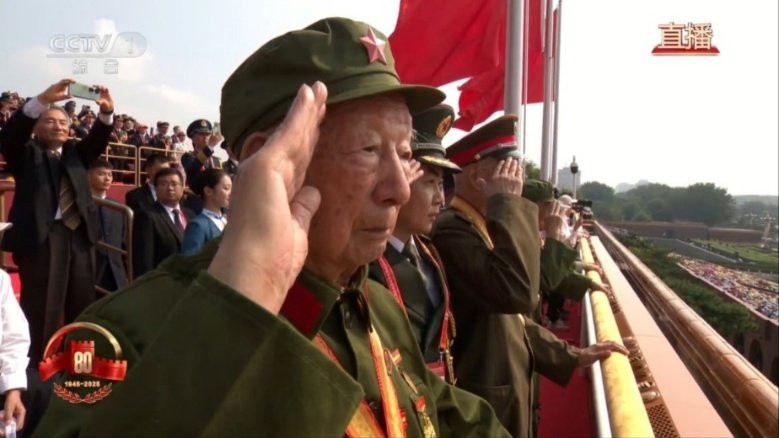 1:阅兵式上老兵对着方阵庄严敬礼,令人动容