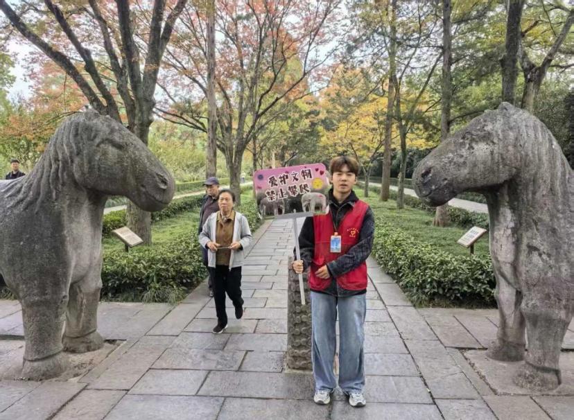 志愿者们不仅是文明旅游的引导者,更化身文化故事的讲述者。他们提前研习石象路神兽的寓意、明孝陵的历史背景,将专业的讲解融入志愿服务中。正如我们都以同样的敬畏之心,守护着明孝陵的一砖一瓦、一草一木。